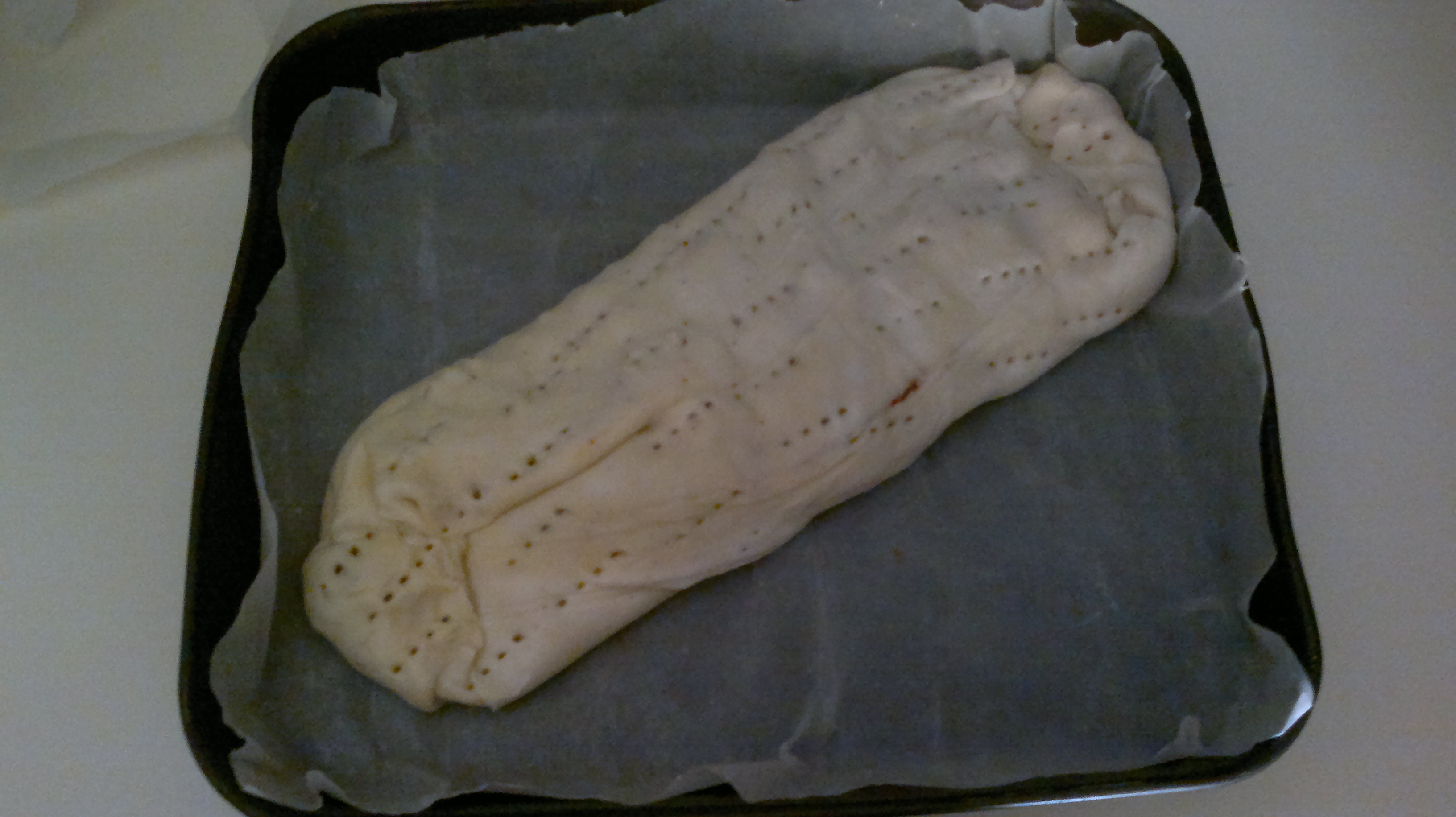 "velocità soft" . Mettere in un recipiente a raffreddare. Trascorso il tempo necessario riprendere la pasta sfoglia e cospargerla con il ripieno; richiudere come preferite ( io l'ho chiuso come uno strudel ), adagiare in una pirofila con carta forno e cuocere per 20 min circa a 200°. Regolarsi col proprio forno, non deve essere troppo cotto altrimenti il ripieno si secca troppo. E' ottimo anche freddo!