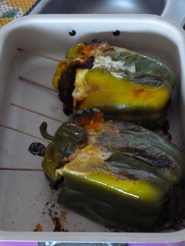 P.S. Nel caso in cui decidiate di mangiarli interi e quindi di non tagliarli a fette come un arrosto, potete diminuire il pangrattato di 20/30 gr, lasciando così il ripieno un pò più liquido, ed avendo dei peperoni ripieni più morbidi a cottura ultimata
