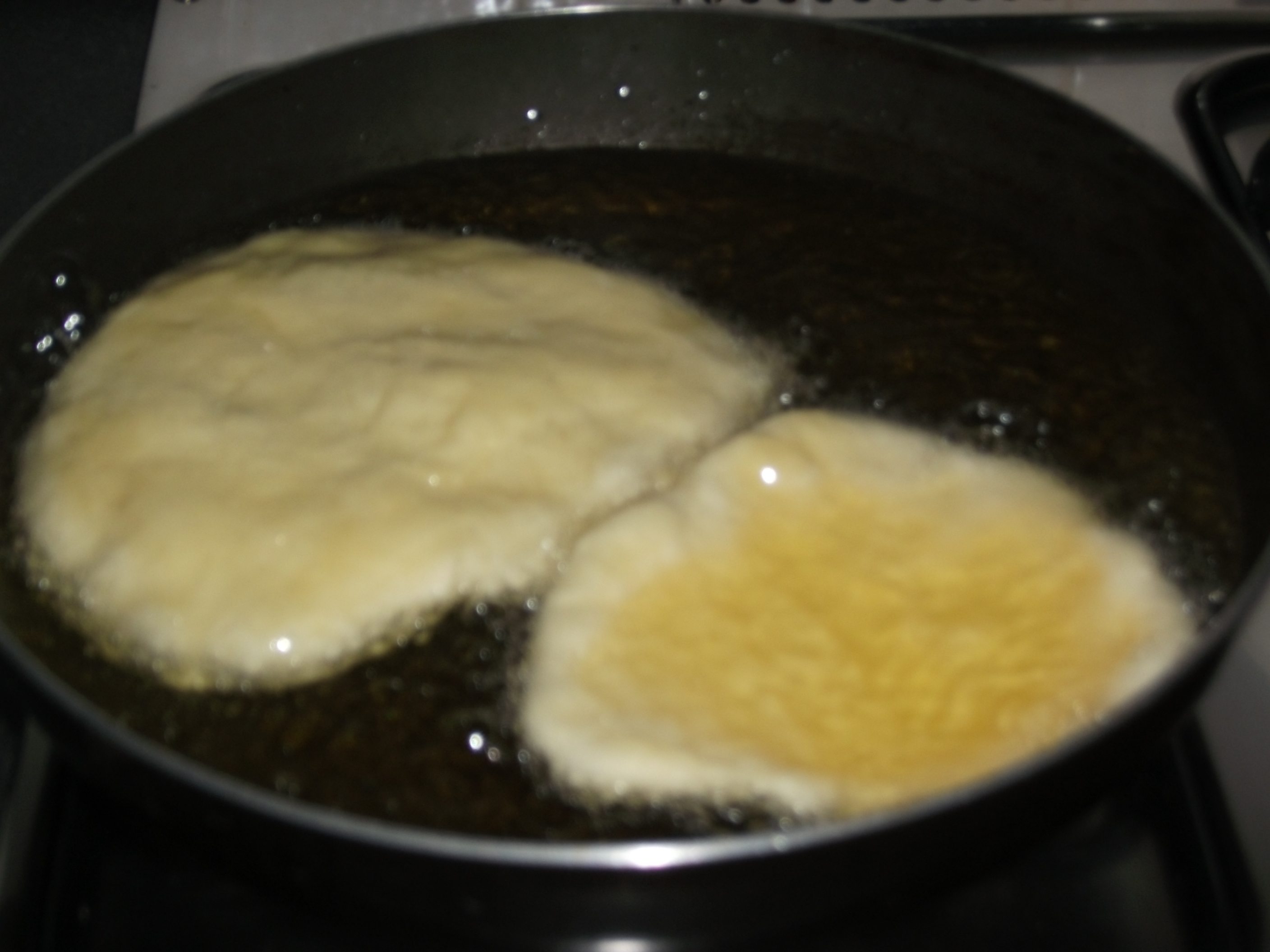Intanto in una capiente padella mettere abbondante olio e far riscaldare.Quando sarà ben caldo preparere le pizzette:con le mani oleate prendete un quantita di pasta grande quanto una arancia stendetela (non troppo) e friggete,appena saranno dorate