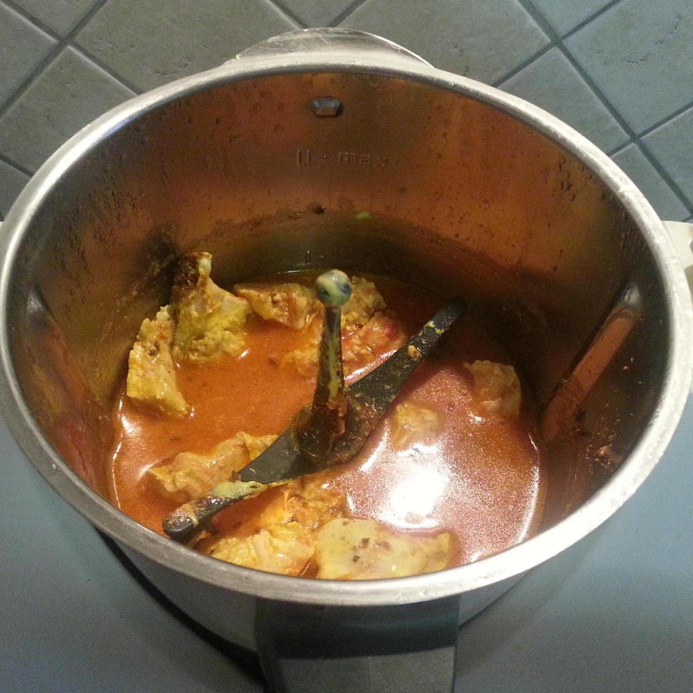 aggiungere il coriandolo, il garam masala e il cumino, cuocere altri 10 minuti velocità soft 100 gradi antioraio.
