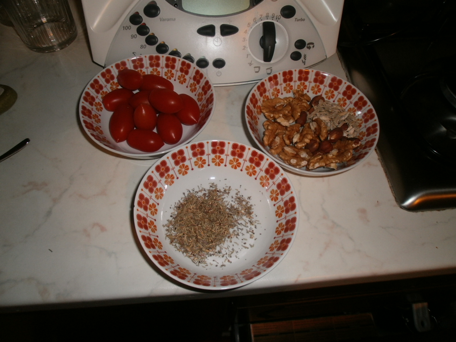 Tostare in una padella a parte le noci, le nocciole e i semi di girasole. (farle saltare un paio di minuti, attenzione a non bruciarle!) Poi tritarle 5 sec. vel. 7 e mettere da parte.