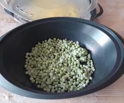 4. Sistemare i pisellini congelati nel recipiente del VAROMA e le uova sbattute con sale e pepe sul vassoio foderato con carta forno.