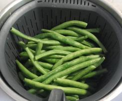 6. Posizionare il cestello con i fagiolini, chiudere il coperchio e posizionare il VAROMA cuocere varoma 13 Min. Vel. 1antiorario"antiorario" .