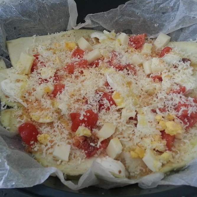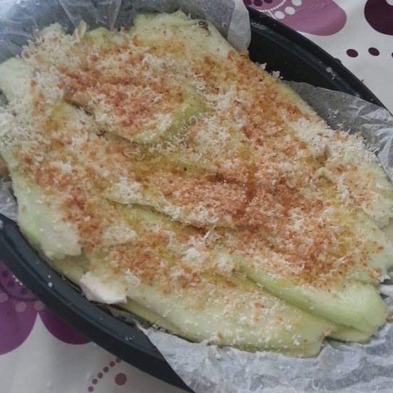 2. ADAGIARE LE MELANZANE TAGLIATE SOTTILI E SPOLVERIZZARE CON GRATIN,PROVOLA O FORMAGGIO,PROSCIUTTO,TOCCHETTI DI POMODORO,LE UOVA BOLLITE A PEZZETTINI,UN PIZZICO DI SALE,PEPE E UN FILO D'OLIO.