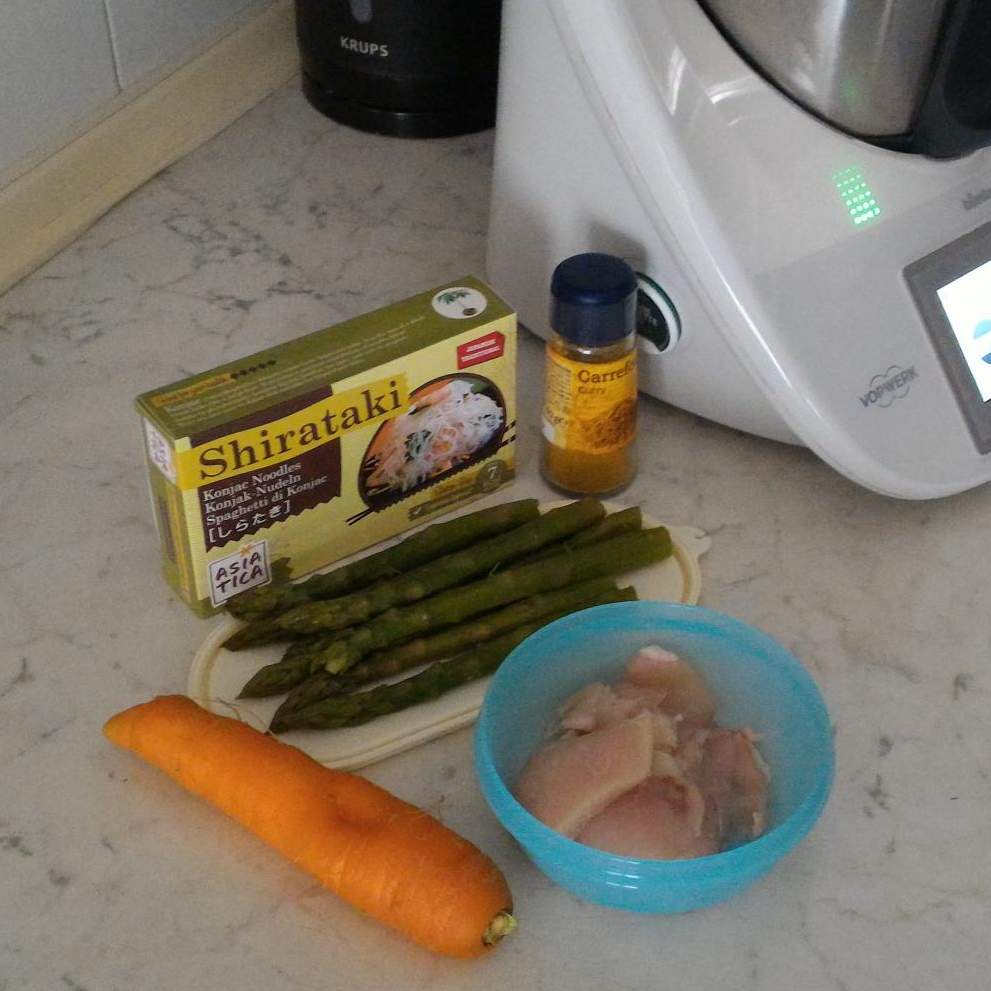 Gli shirataki sono un tipo di pasta proventiente dal Giappone. Si ricavano dalla radice di konjac e sono naturalmente privi di glutine. Il tipo di shirataki che ho utilizzato sono sotto salamoia e vanno sciacquati bene sotto l'acqua fredda prima di essere utilizzati. La porzione per una persona sono 50 grammi e non hanno bisogno di cottura ma solo di essere immersi nell'acqua calda per qualche minuto.