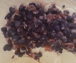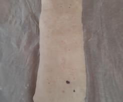 Strudel salato pasta matta ripieno di patate viola speck e mozzarella a fette