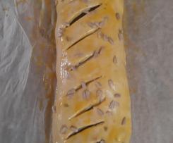 - Prima di infornare il nostro strudel spennellate con l'uovo sbattuto e metterci sopra in semini a vostro piacimento