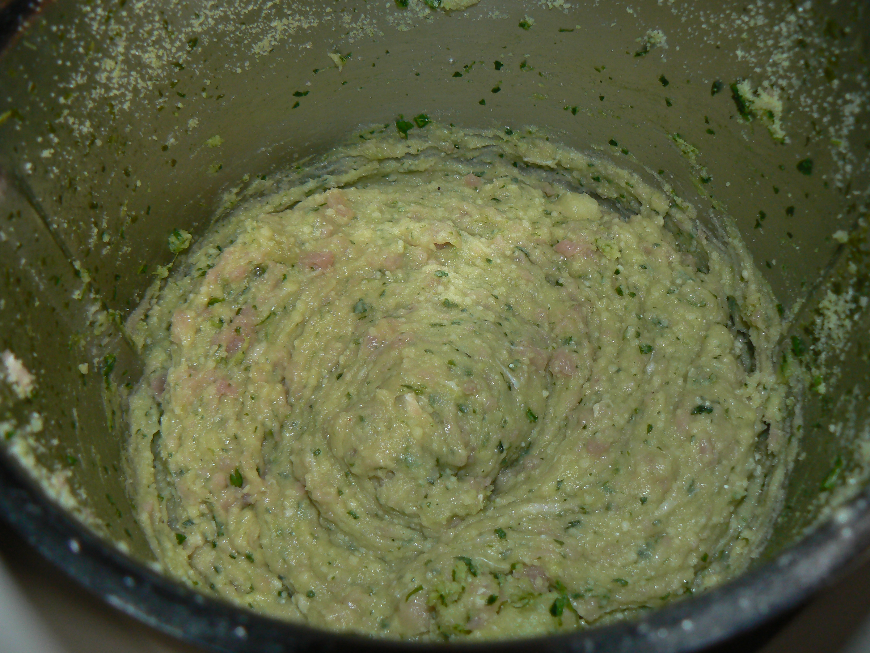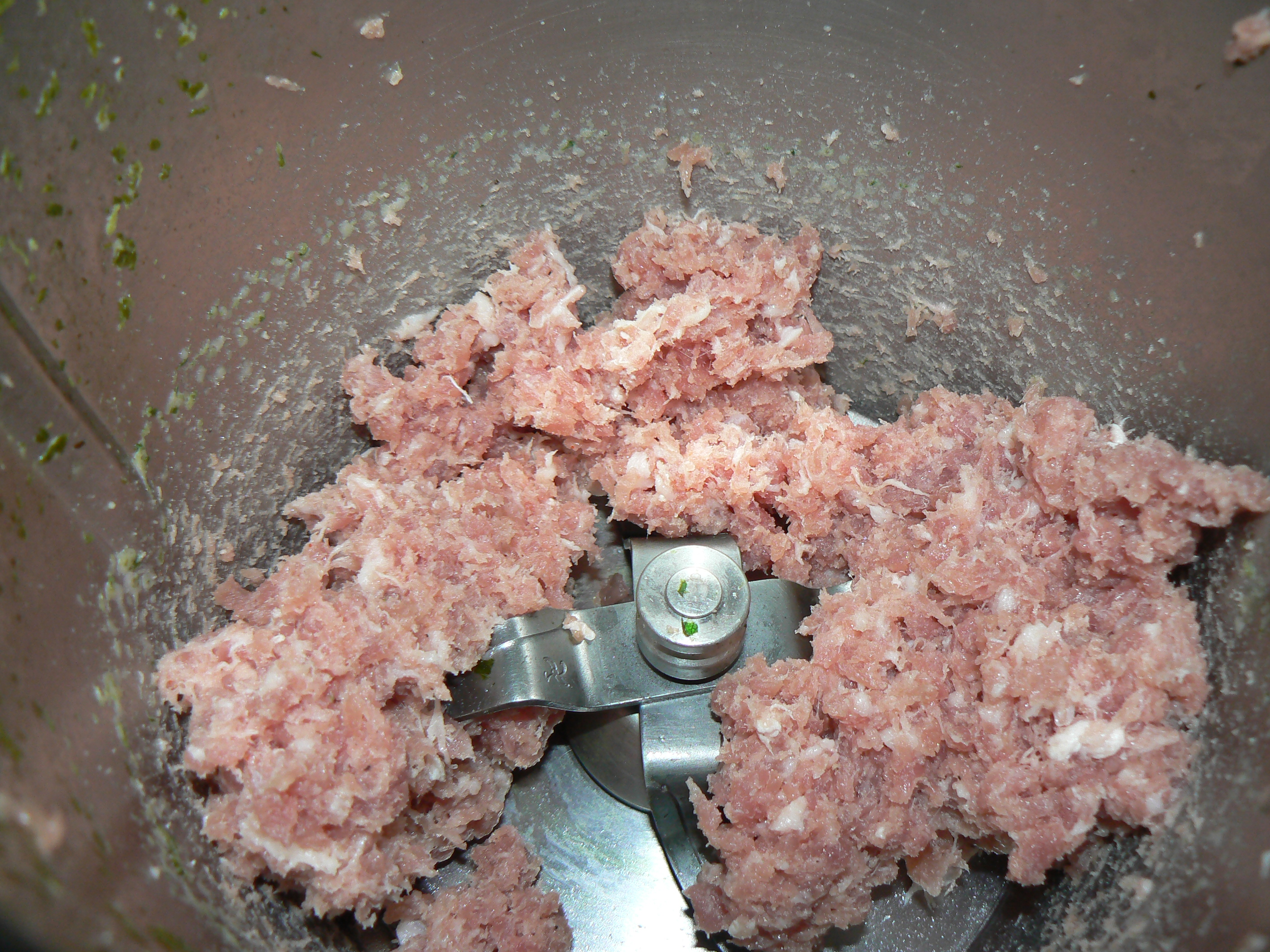 "coperchio chiuso" la salsiccia. Tritare per 10 sec. vel.4. Aggiungere le patate, il trito di aglio e prezzemolo e il formaggio grattugiato e amalgamare per 20 sec. vel.4.Cospargere di burro e pangrattato una tortiera di 26 cm di diametro e mettere in forno preriscaldato a 180° per 45 min. Una volta sfornato, lasciare intipeidire prima di servire.