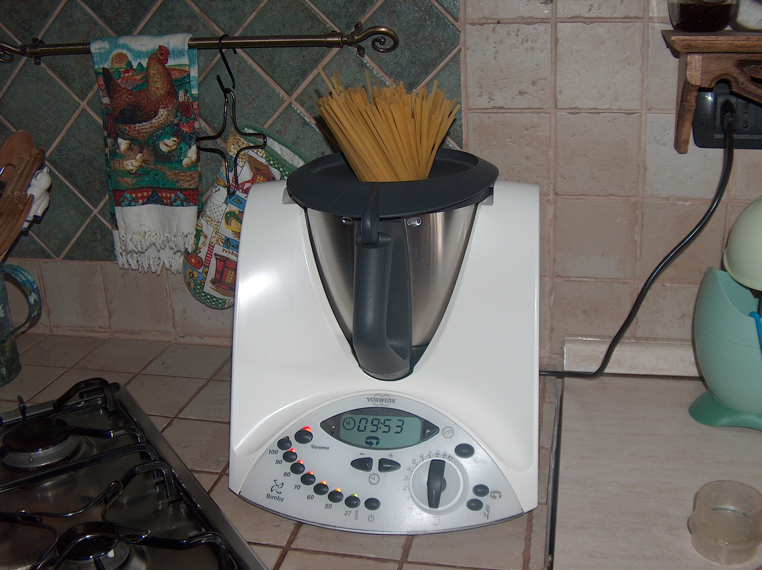 "velocità soft" - Aggiungere il sale e le bavette e impostare 100° per il tempo indicato sulla confezione+2 min. per far scendere le bavette.