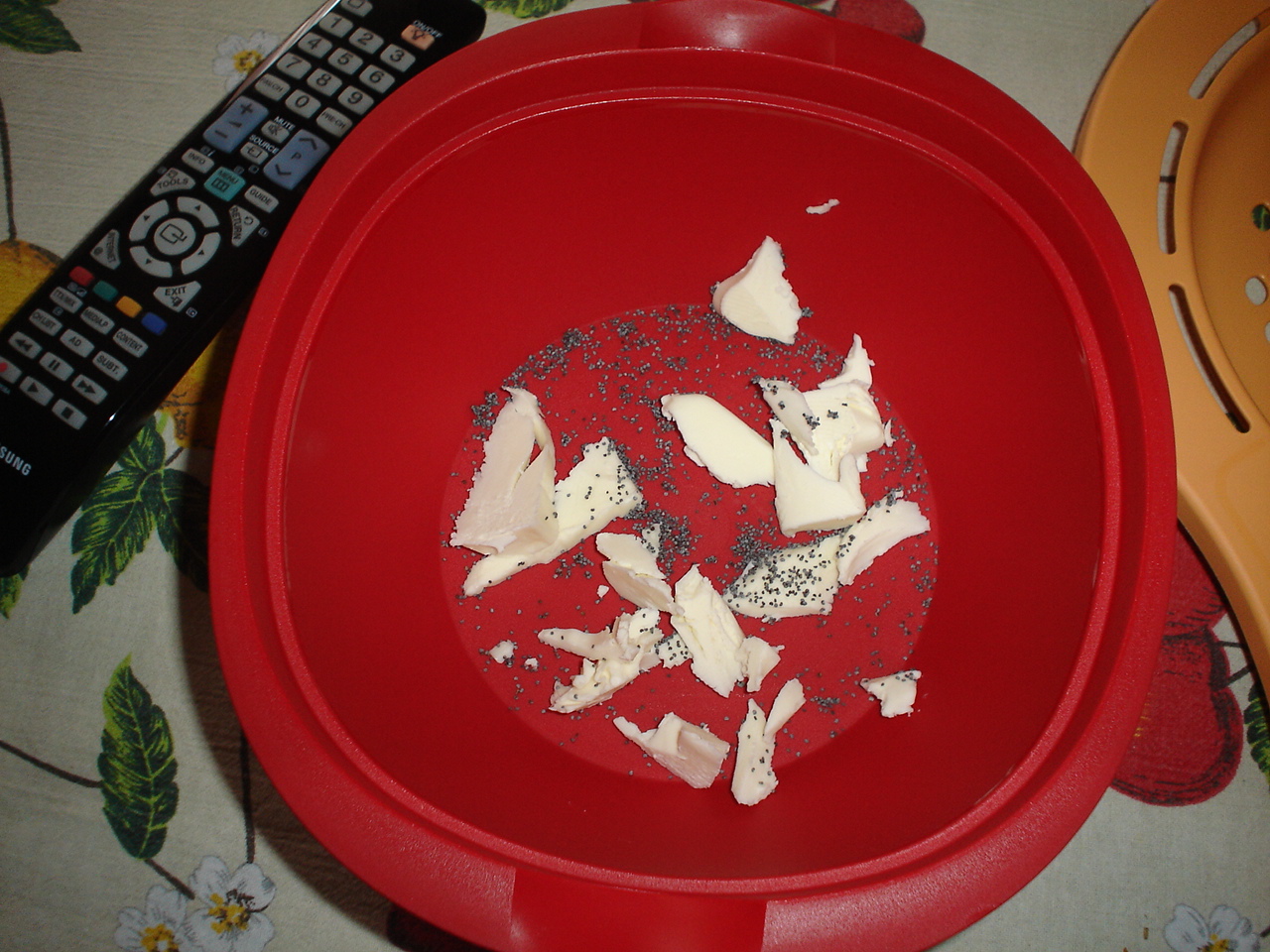 - Per condire predisporre in un recipiente idoneo il burro apiccoli pezzettini, le erbe aromatiche, il pepe e i semi di papavero;