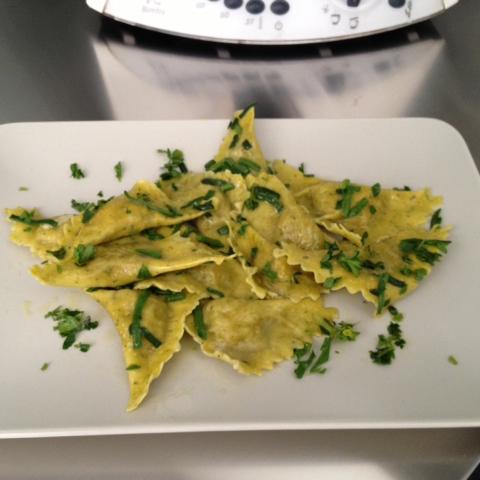 Buonissima, non avevo le zucchine e l' ho conditi burro e salvia; è stato comunque un successone.