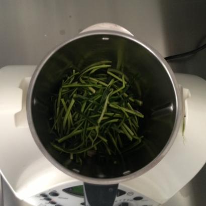"coperchio chiuso" l'olio e l'aglio e soffriggi 3 min 100° vel 1.Aggiungi solo la parte esterna delle zucchine tagliate a julienne e il sale e cucina 8 min