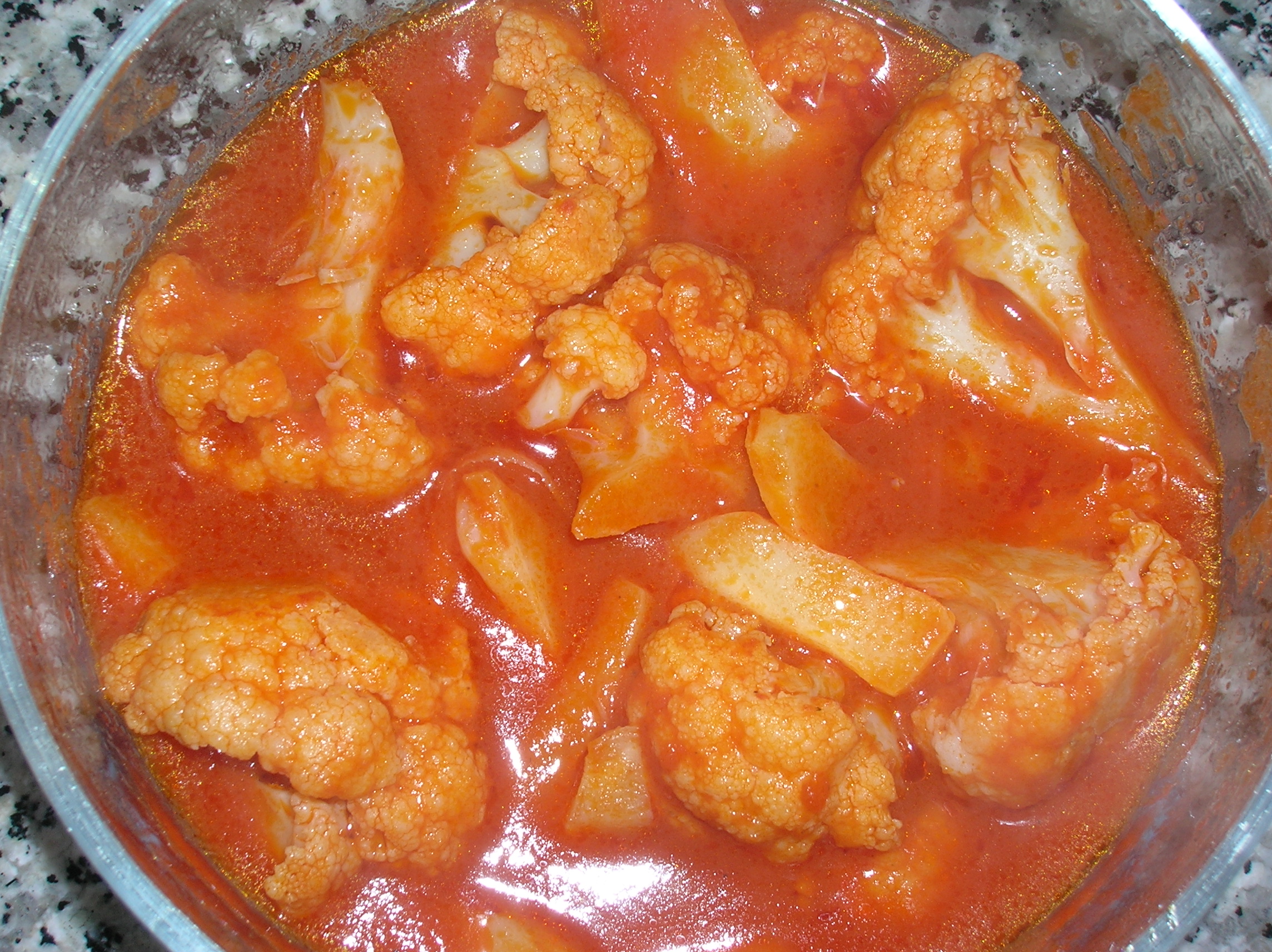 Aggiungere la passata di pomodoro, le cimette di cavolfiore, sale e pepe. Cuocere: 20/25 min. 100°
