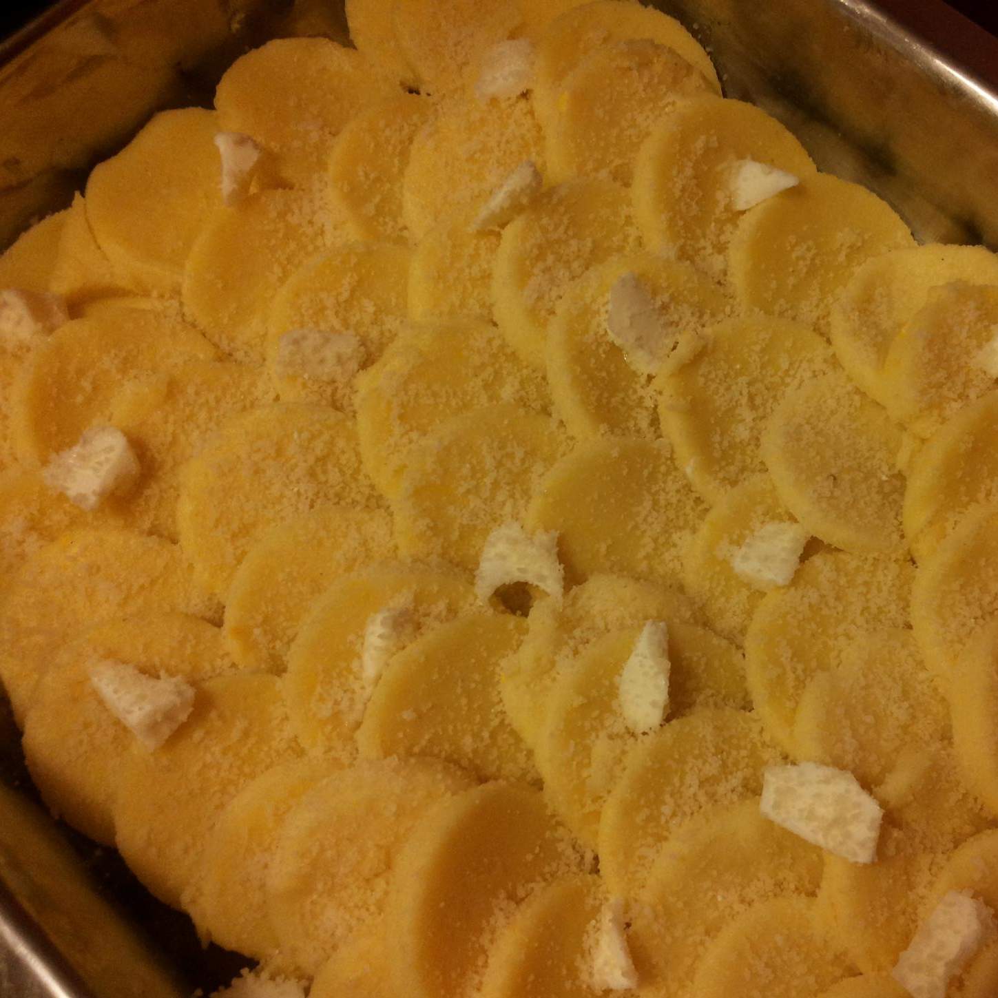 Disporre sopra ai dischetti dei fiocchetti di burro e spolverizzare col parmigiano rimasto.
