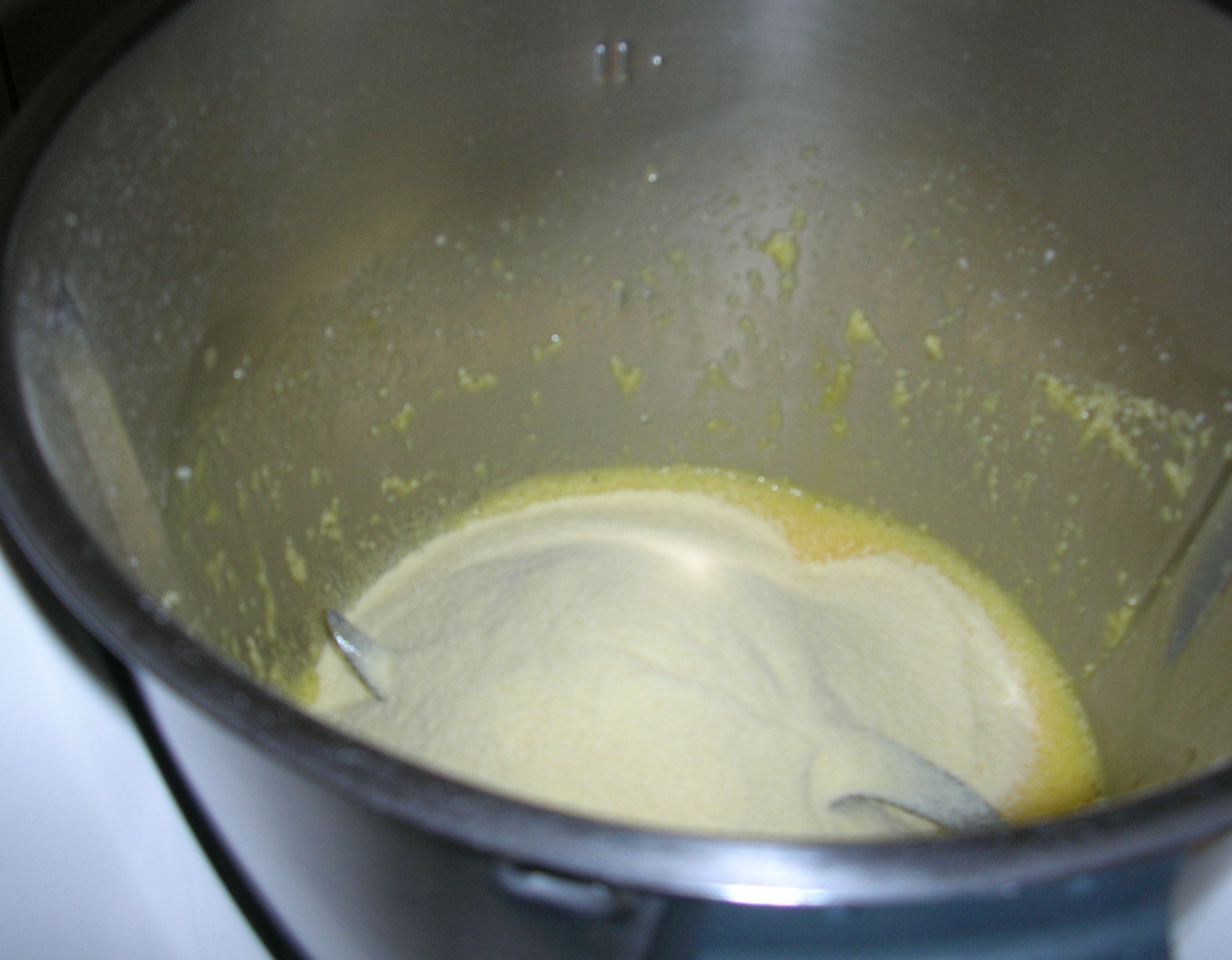 1. Impostare la bilancia e versare le uova nel boccale, avendo cura di pesarle. Amalgamare: pochi sec./vel. 4.