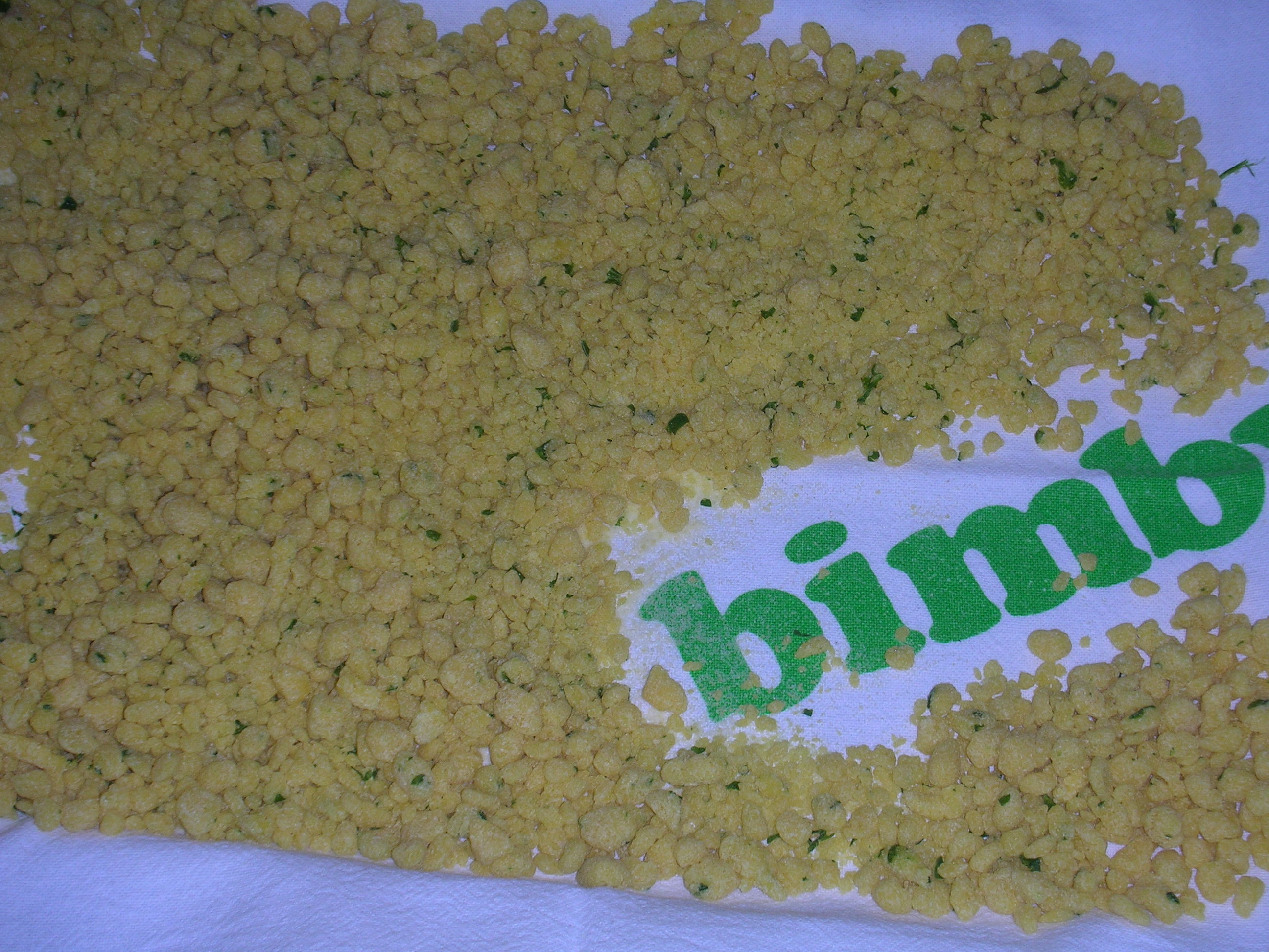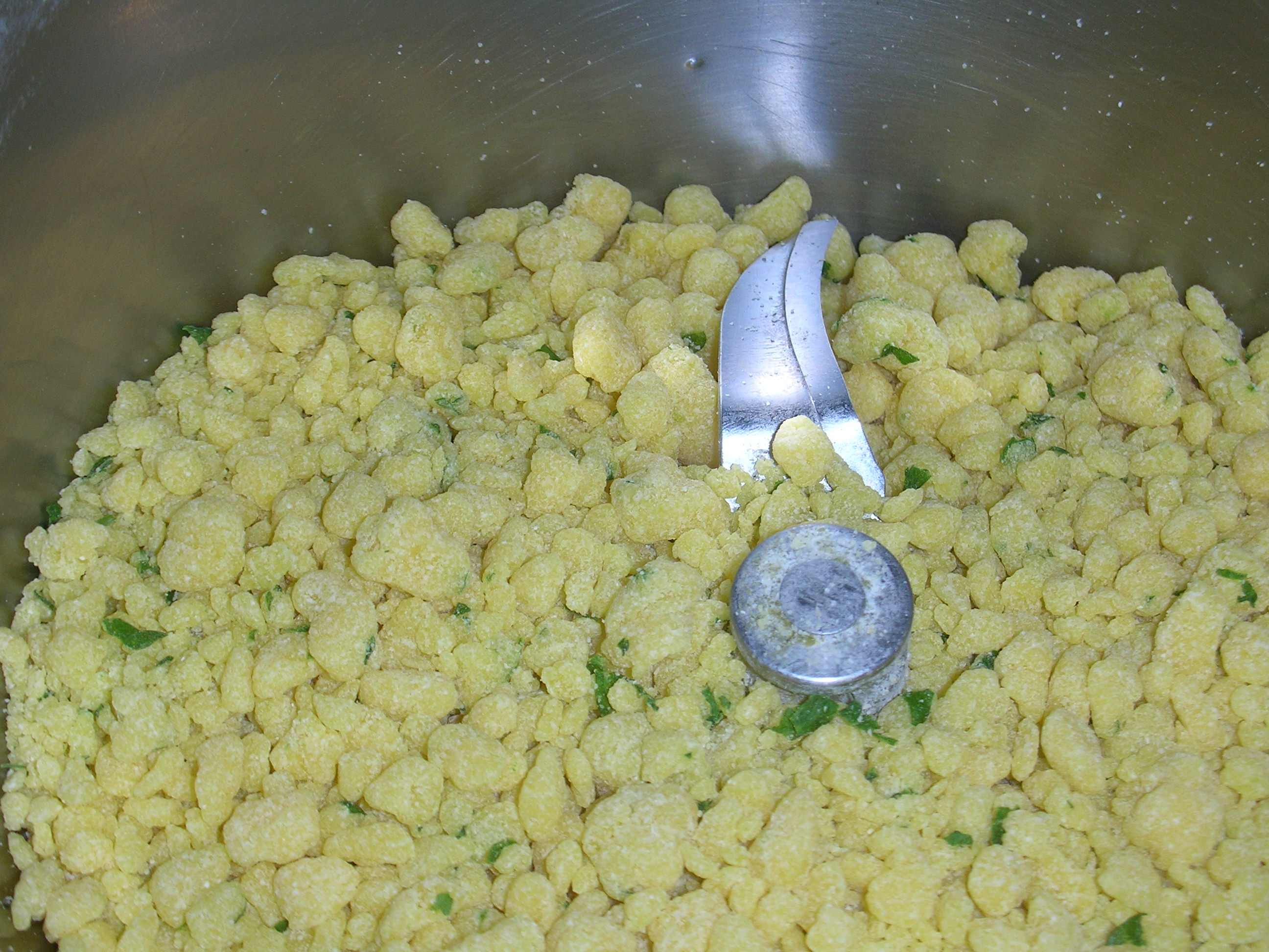 "velocità spiga" e continuare a versare a pioggia la farina di semola, fino a quando non si otterranno i grattoni della grandezza desiderata.4. Trasferire i grattoni su un canovaccio pulito e lasciarli riposare fino a quando non saranno ben asciugati.