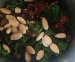 - Una volta che sono amalgamati bene serviteli. Io ho aggiunto ancora delle lamelle di mandorle e qualche pomodorino secco sott'olio un po' di grana e buon appetito.