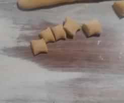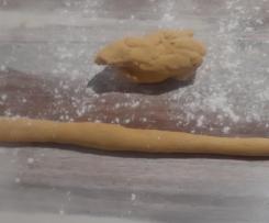 - Lavorate un pochino l'impasto. con le mani su carta forno e un po' di farina. Ora fate i classici gnocchetti, vedi foto.