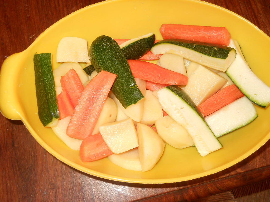 - Sbucciare le patate, le carote e le zucchine. poi tagliate in pezzi e lavatele ed asciugatele;