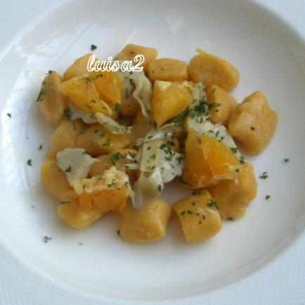 gnocchi conditi con carciofi e arancia (non c'è molto contrasto)