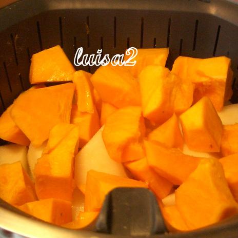 io ho cotto 320 g di patate e 160 g di zucca (3 persone) nel cestello