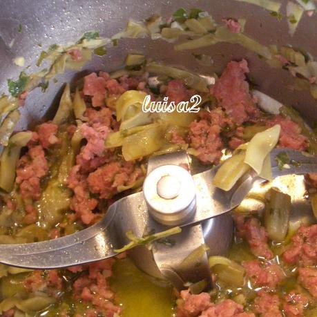 Come detto sopra oggi ne ho preparato 3 porzioni, di cui una senza salamella. Per fare ciò, dopo aver cotto per 5 min i carciofi ne ho tolto una cucchiaiata, al resto ho aggiunto la salamella sbriciolata e continuato la cottura