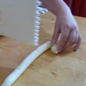 Ora tagliare a tocchetti più o meno uguali di grandezza con un coppa pasta.