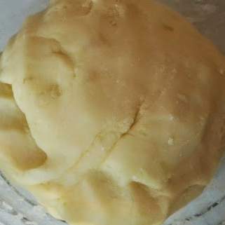 Ora aggiungere fecola dal foro con le lame in movimento poco alla volta finché l'impasto inizierà a staccarsi completamente dai bordi e raggiungerà una consistenza facilmente lavorabile senza appiccicarsi alle mani.