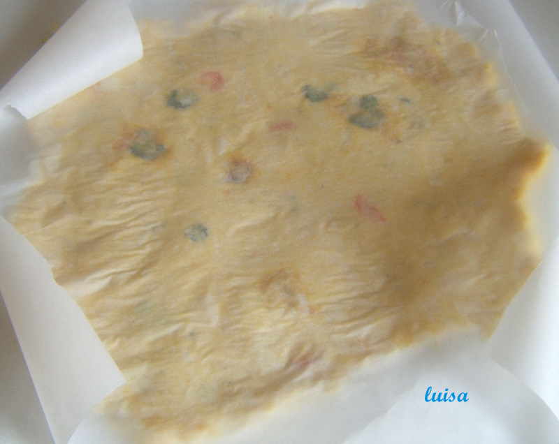 Preparare due fogli di carta forno leggermente unti di olio, versare il semolino sul primo foglio, coprirlo con il secondo foglio e stendenrlo a cm 1 cm, ritagliarlo a dischi di 4 cm di diametro