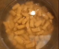- Dal panetto ancora caldo, formare dei rotolini, tagliarli a pezzetti e passarli sui rebi della forchetta per formare gli gnocchi.