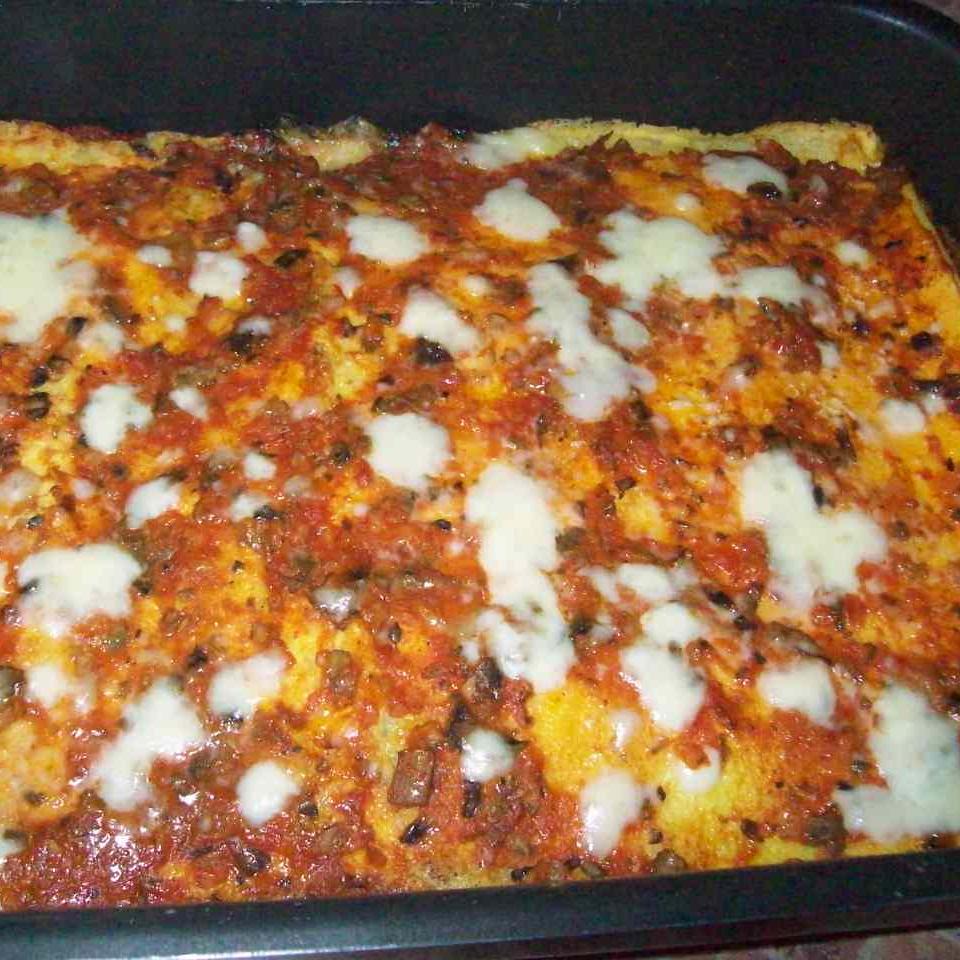 Mettere un pò di sugo sul fondo della teglia. Sistemarvi 2 crepes, poi un pò di sugo, un pò di mozzarella e parmigiano. Continuare fino all'esaurimento. Cuocere nel forno caldo: 200° / 10min circa.