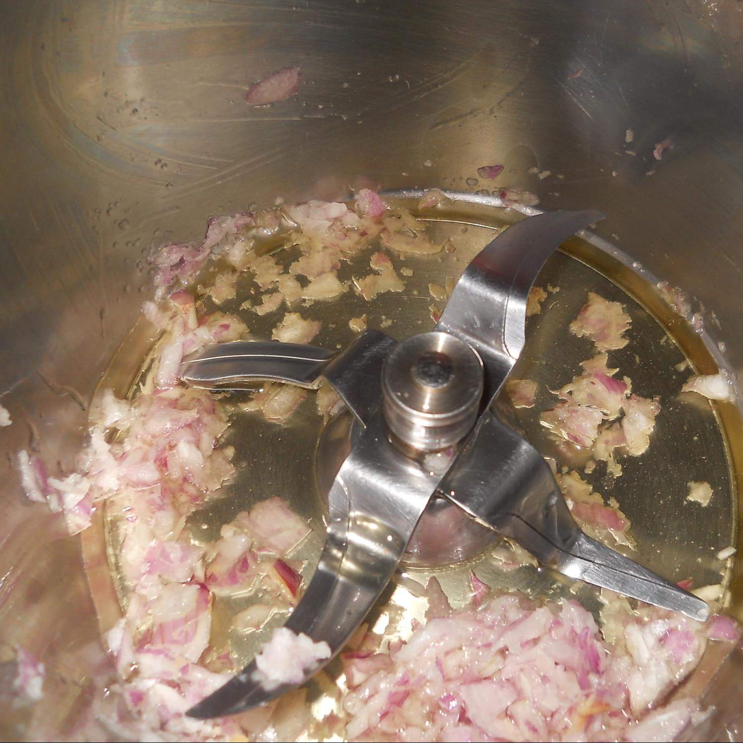 e tritatre 5 Sec Vel 7 e rinute con la spatola unite olio e fate rosolare 3 Minuti 100° Vel 1