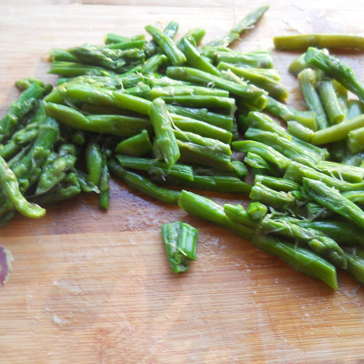 Per prima cosa tagliate a pezzi gli asparagi e lasciateli da parte