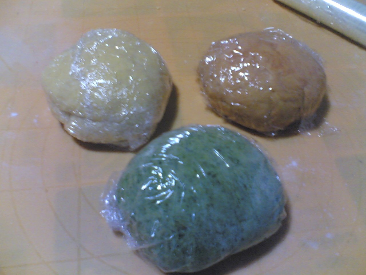 "velocità spiga" . Avvolgere nella pellicola e mettere da parte.Impasto VERDE: far scongelare gli spinaci, possibilmente su un tovagliolo di carta, così assorbe l’acqua. Mettere in una padellina e far asciugare ancora un altro po’. Far raffreddare. Mettere nel