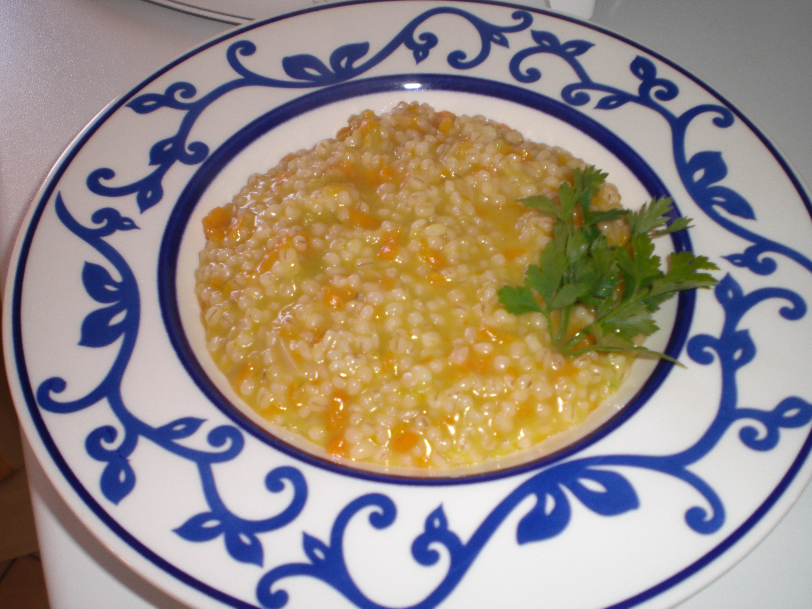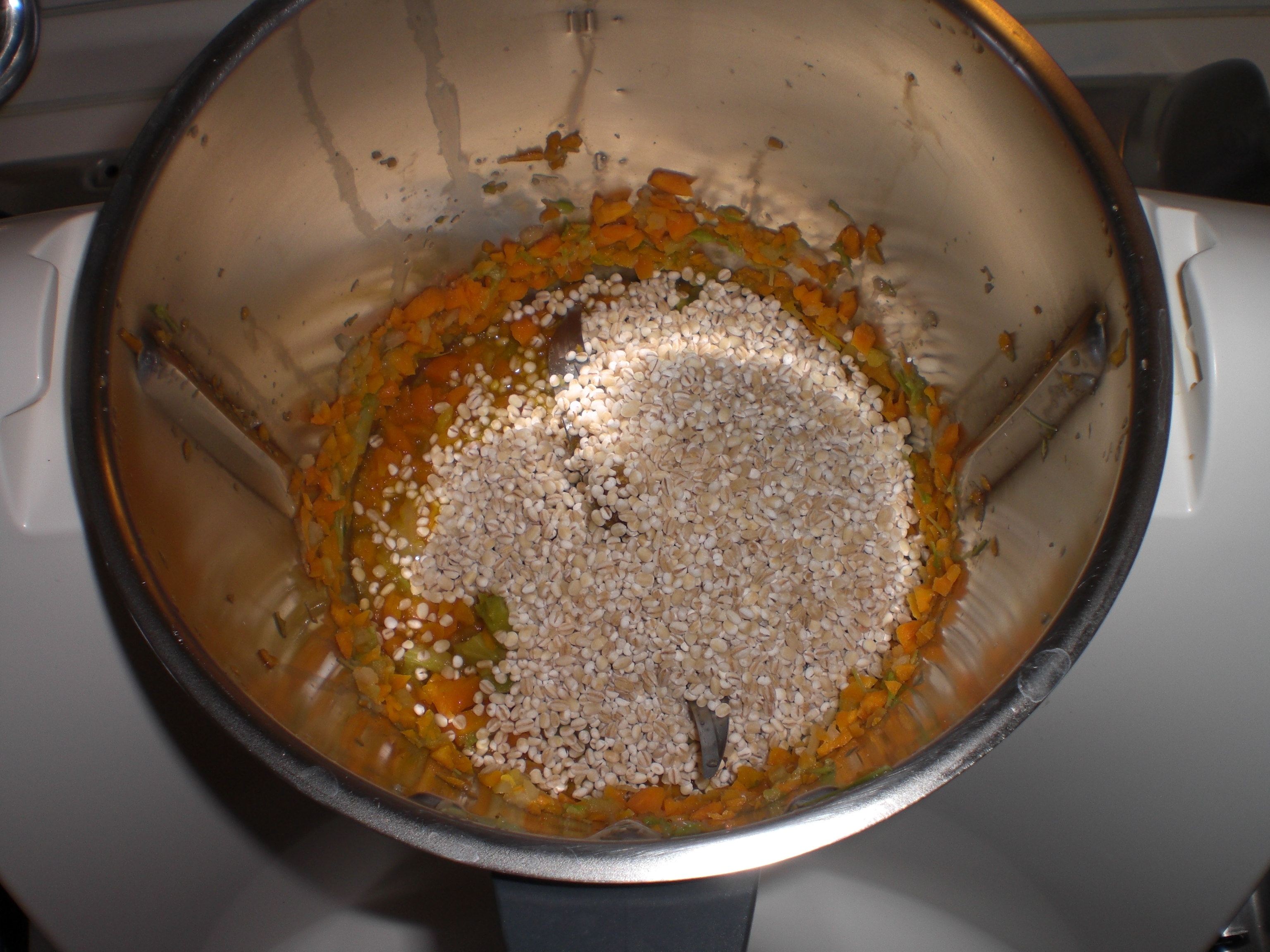 - Versare a questo punto l'orzo nel soffritto 5min./