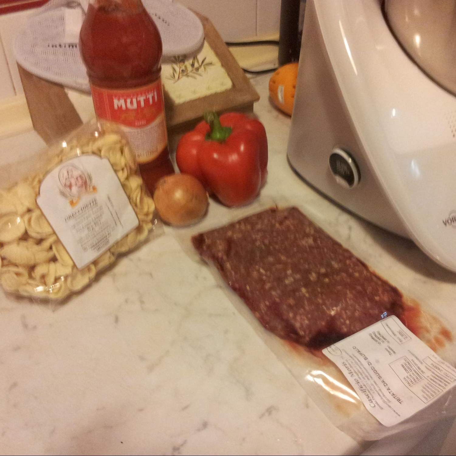 5. Aggiungere la passata di pomodoro, il sale, il pepe e l'origano e cuocere per 30 min 100° vel 1. 6. Mettere da parte il sugo e procedere alla cottura delle orecchiette nel Bimby come previsto dal ricettario e secondo il tempo indicato dalla confezione. 7. Scolare le orecchiette e condirle con il ragù.