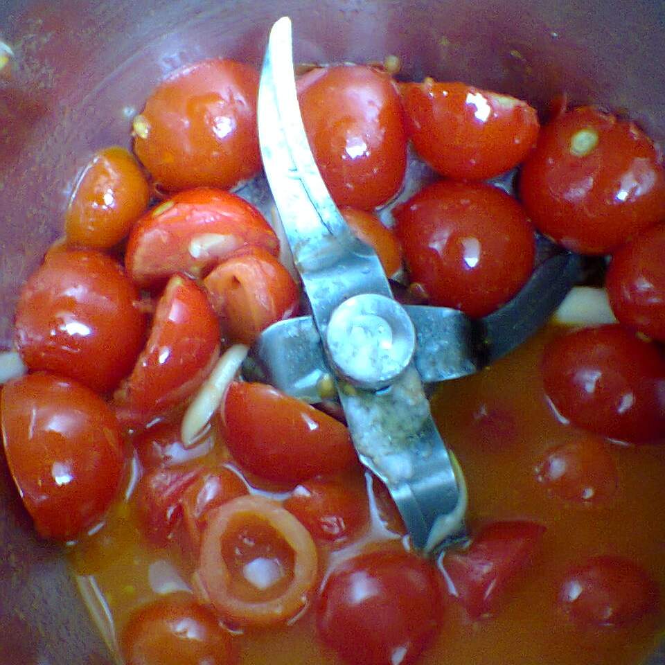 "coperchio chiuso" con l'olio, l'aglio e il sale e cuocere 7/8 minuti 100° vel. 1 Poi altri 2/3 minuti a temp. varoma. Controllare il sughetto che non sia troppo liquido.