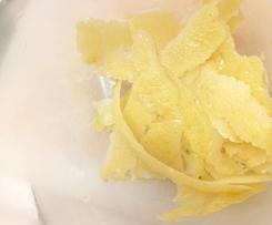 Se si ha il tempo di preparare in anticipo le 12 h di ammollo delle scorzette è assai meglio, gli oli essenziali del limone verranno ceduti all'acqua che servirà per la cottura.