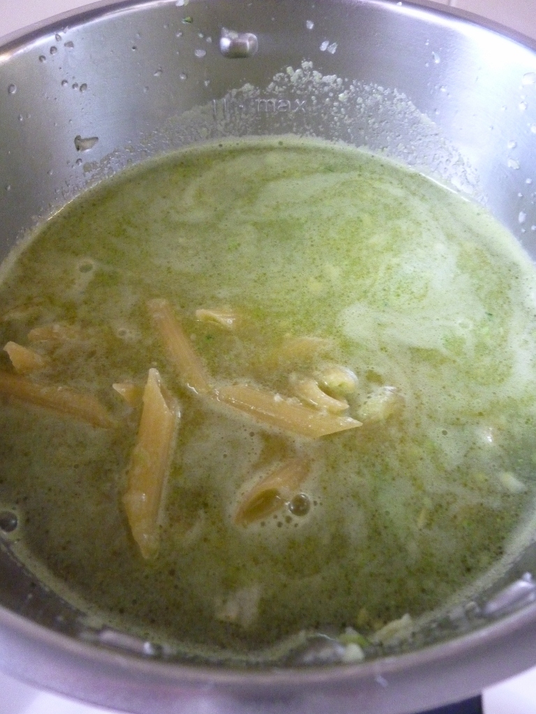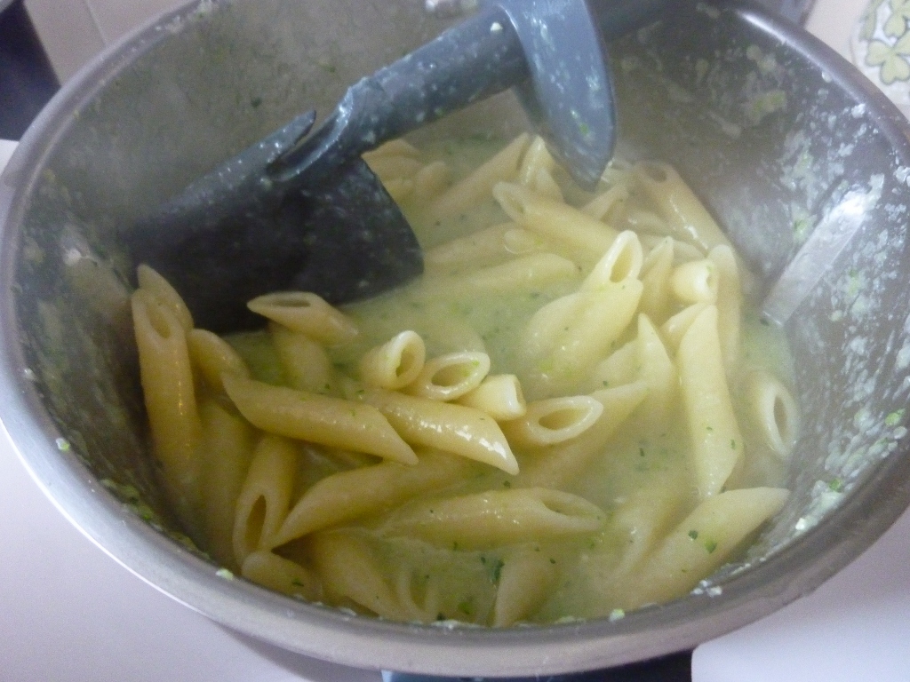 "velocità soft" secondo quanto indicato sulla confezione della pasta.Togli il coperchio,rimetti le zucchine, e cuoci un ulteriore minuto sempre in