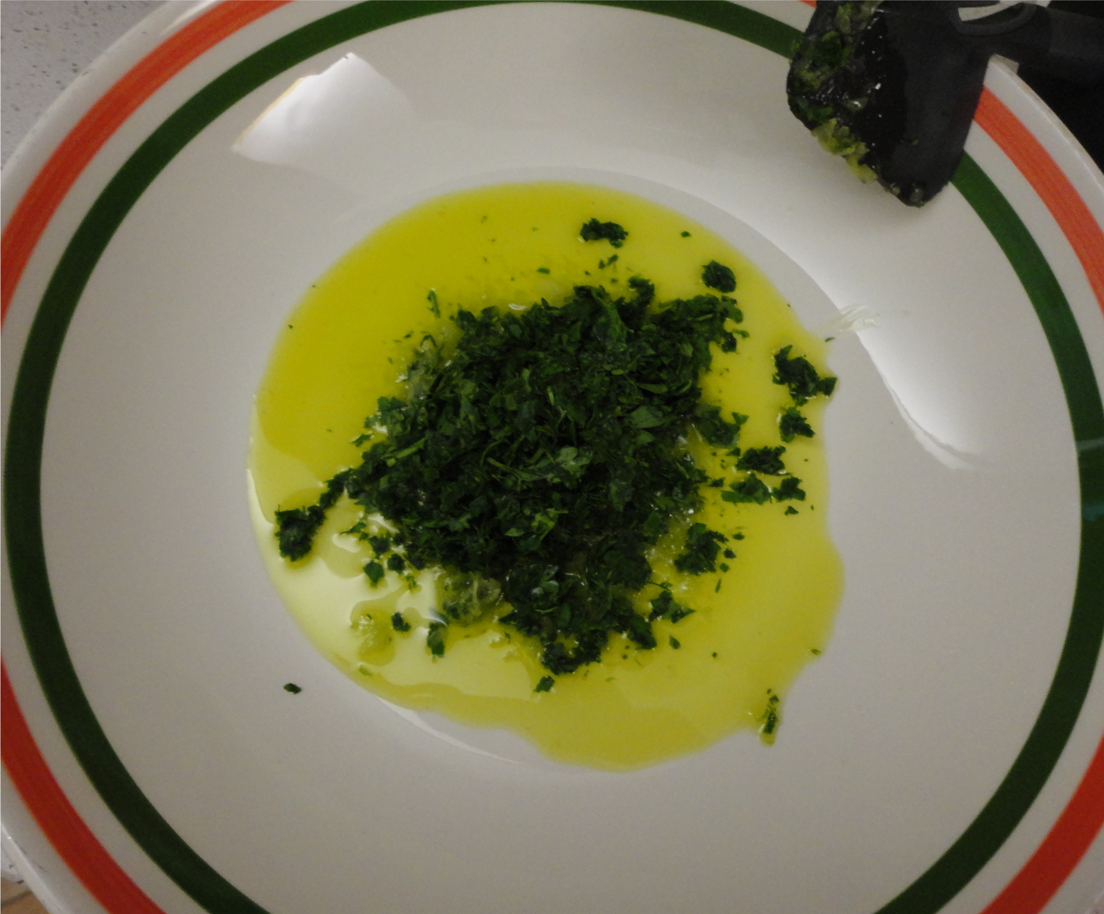 Mettere nel boccale lo scalogno il prezzemolo e il (peperoncino