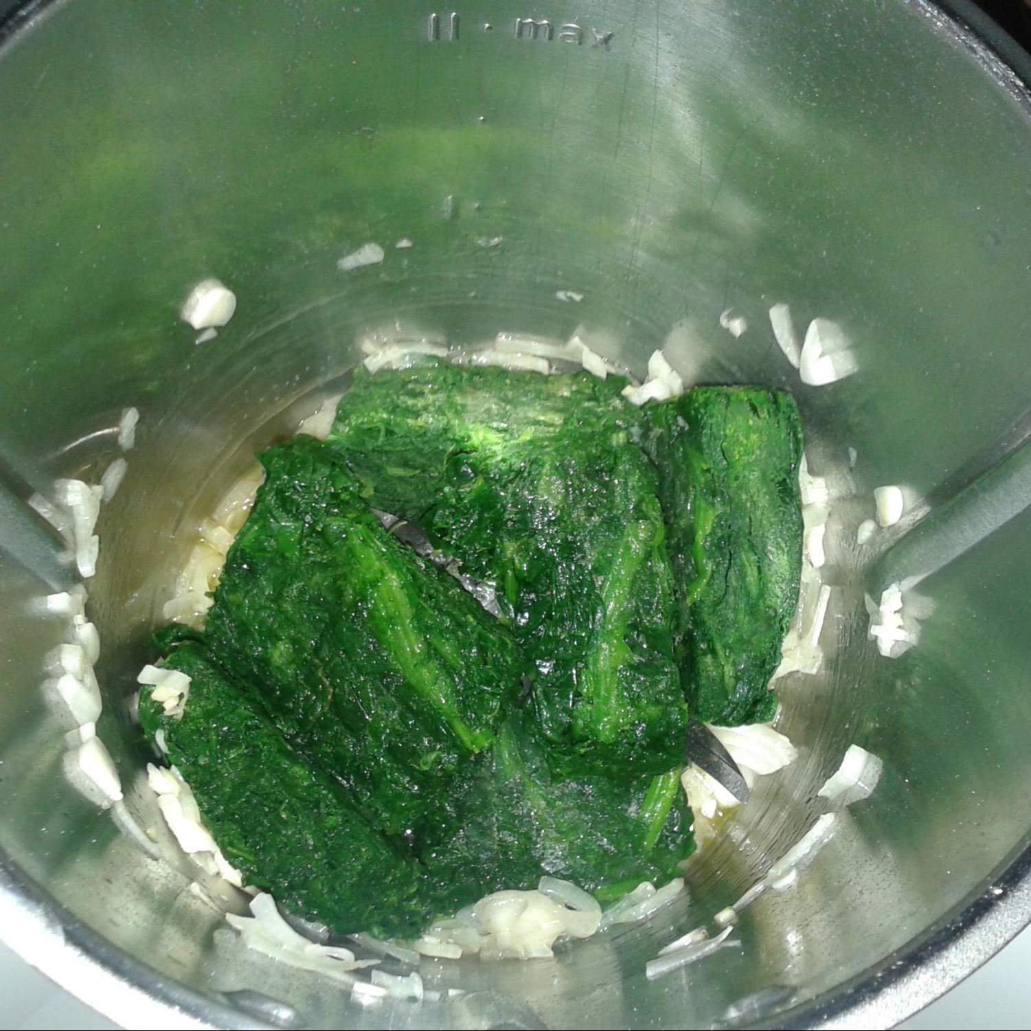 Aggiungere gli spinaci ancora surgelati e 100 gr di acqua, 15 minuti 100° velocità soft.