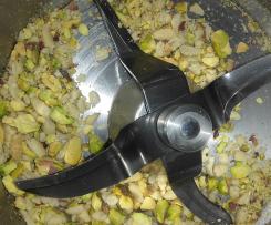 - Tostare pistacchi e pinoli 3 Min. 100°C Vel. 2 poi tritare 3 Sec. Vel. 7 (mettere da parte per il pesto).