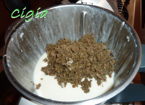 A questo punto, amalgamare con la besciamella l’asiago tritato e i carciofi: 30’’ vel. 4