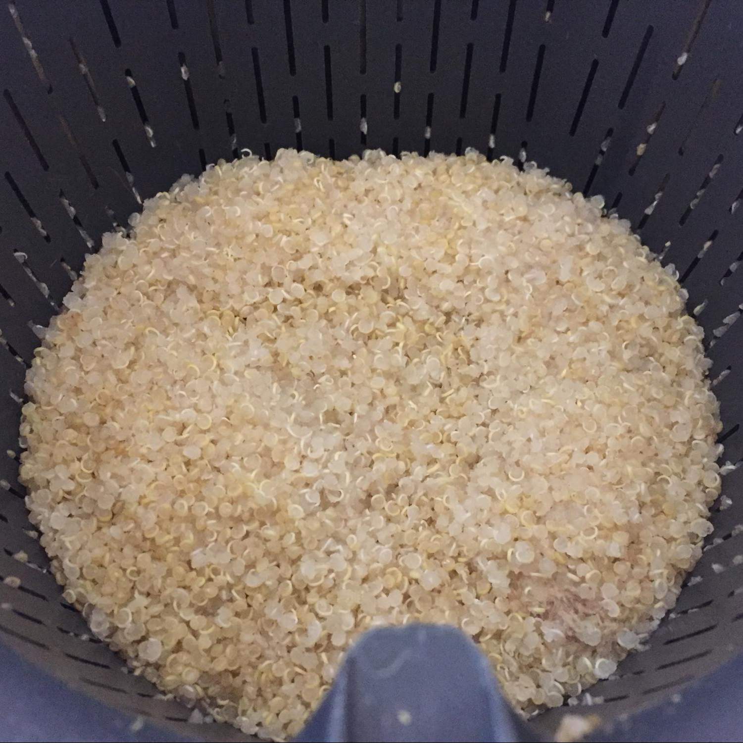 1. Sciacquare bene la quinoa sotto l'acqua corrente e scolarla.