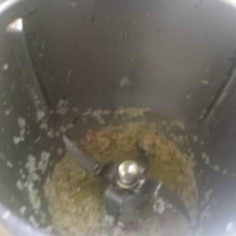 A questo punto inserire nel boccale il parmigiano a pezzi e le foglioline di basilico lavate e asciutte. (La quantità più o meno del basilico dipende dai gusti personali) e tritare dai 3 ai 5 secondi a velocità 8. - 3° PASSAGGIO COTTURA