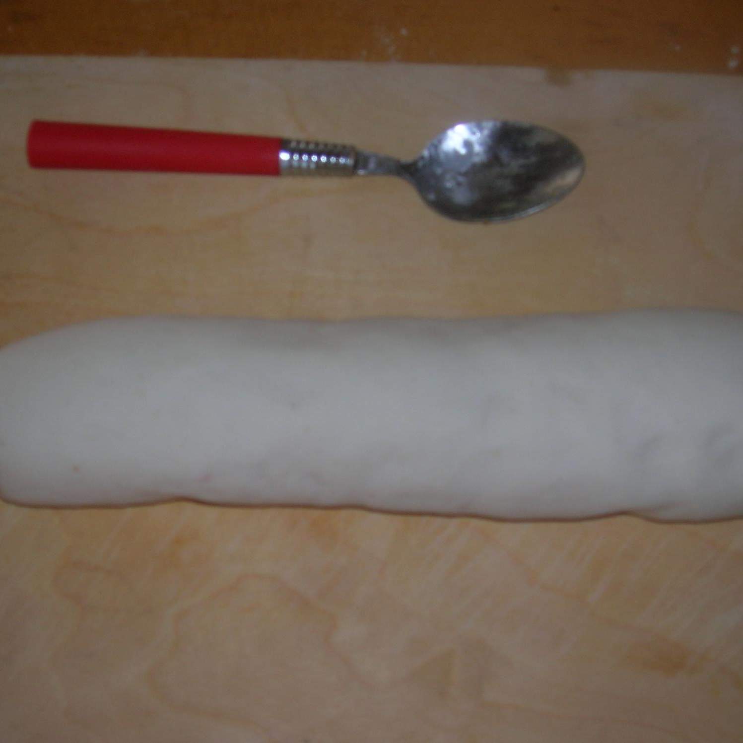 "velocità spiga" per un tempo di 2 minuti - lavorare su una spianatoia l'impasto fino a compattare la pasta e farne una forma a sfilatina come da figura