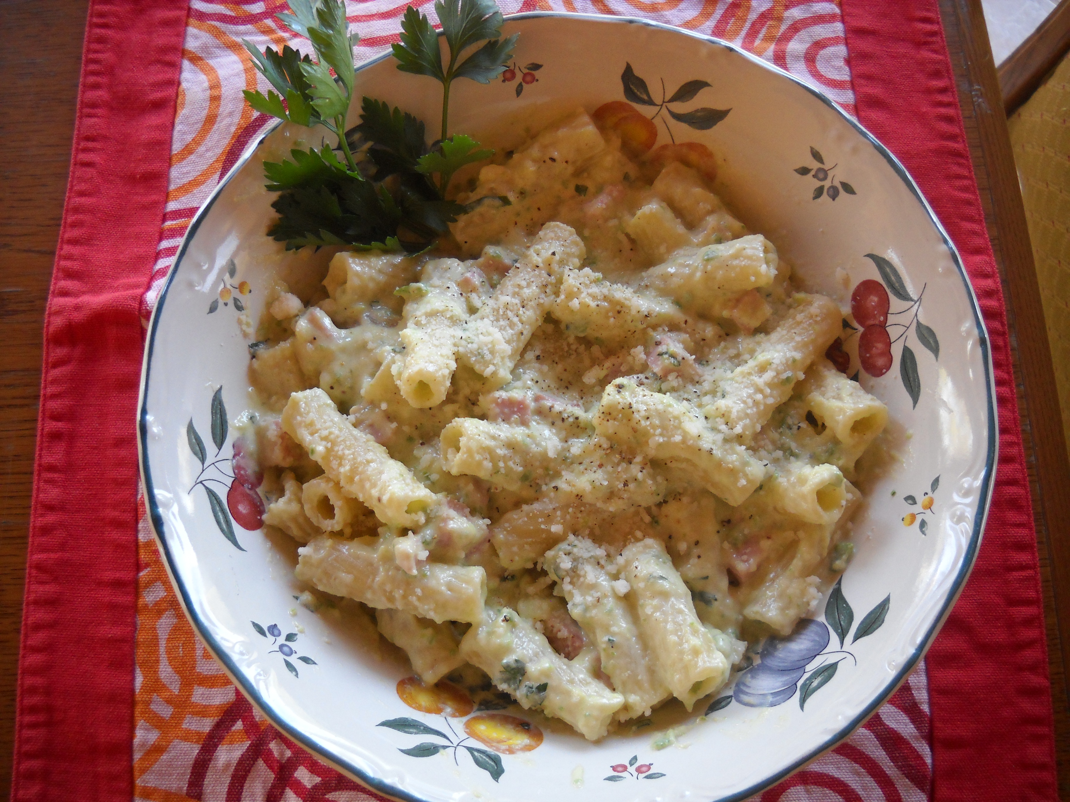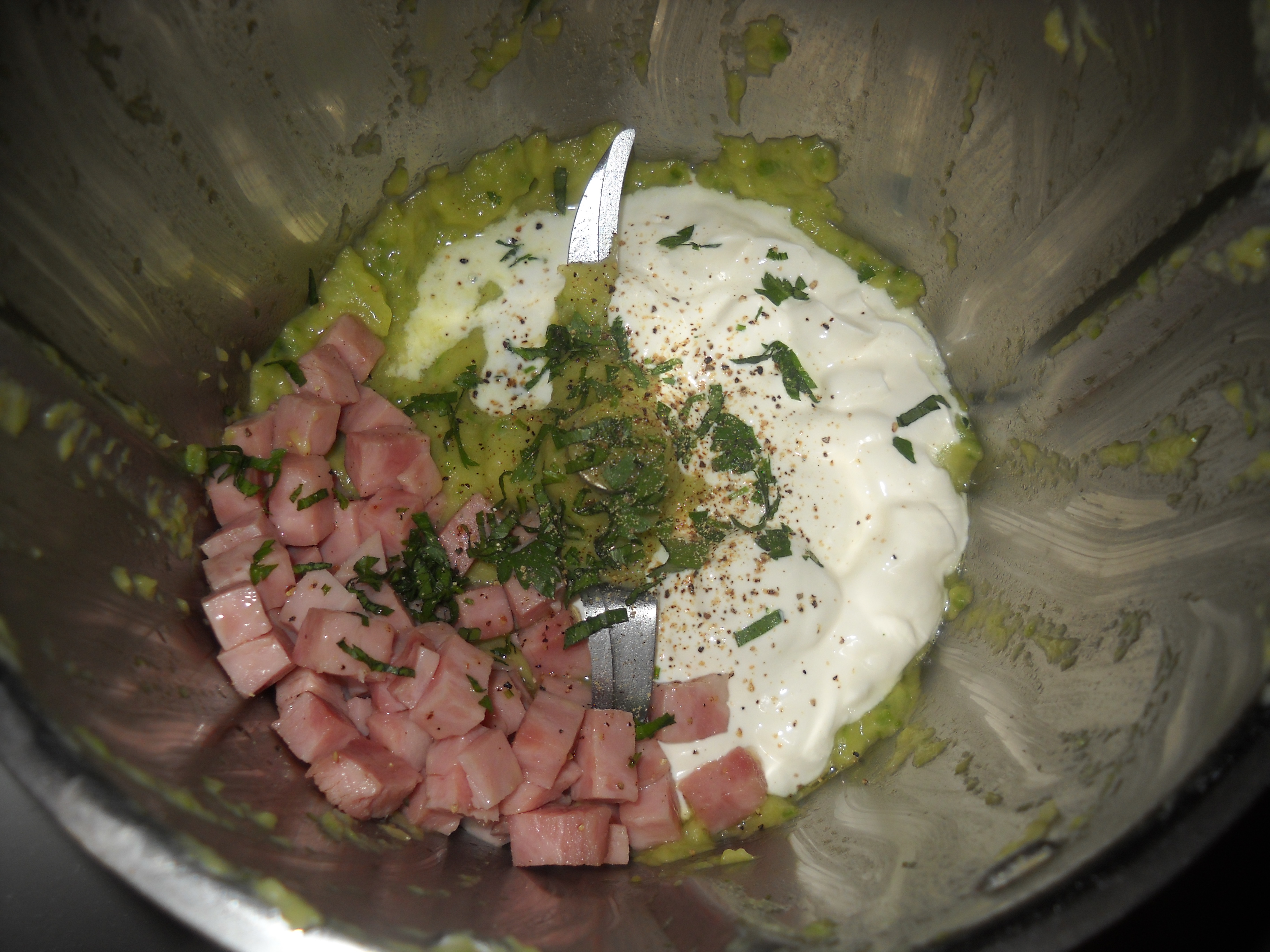 Ho infine riunito sul fondo,aggiunto il prosciutto cotto,la panna,il pepe nero e il prezzemolo 1 min vel