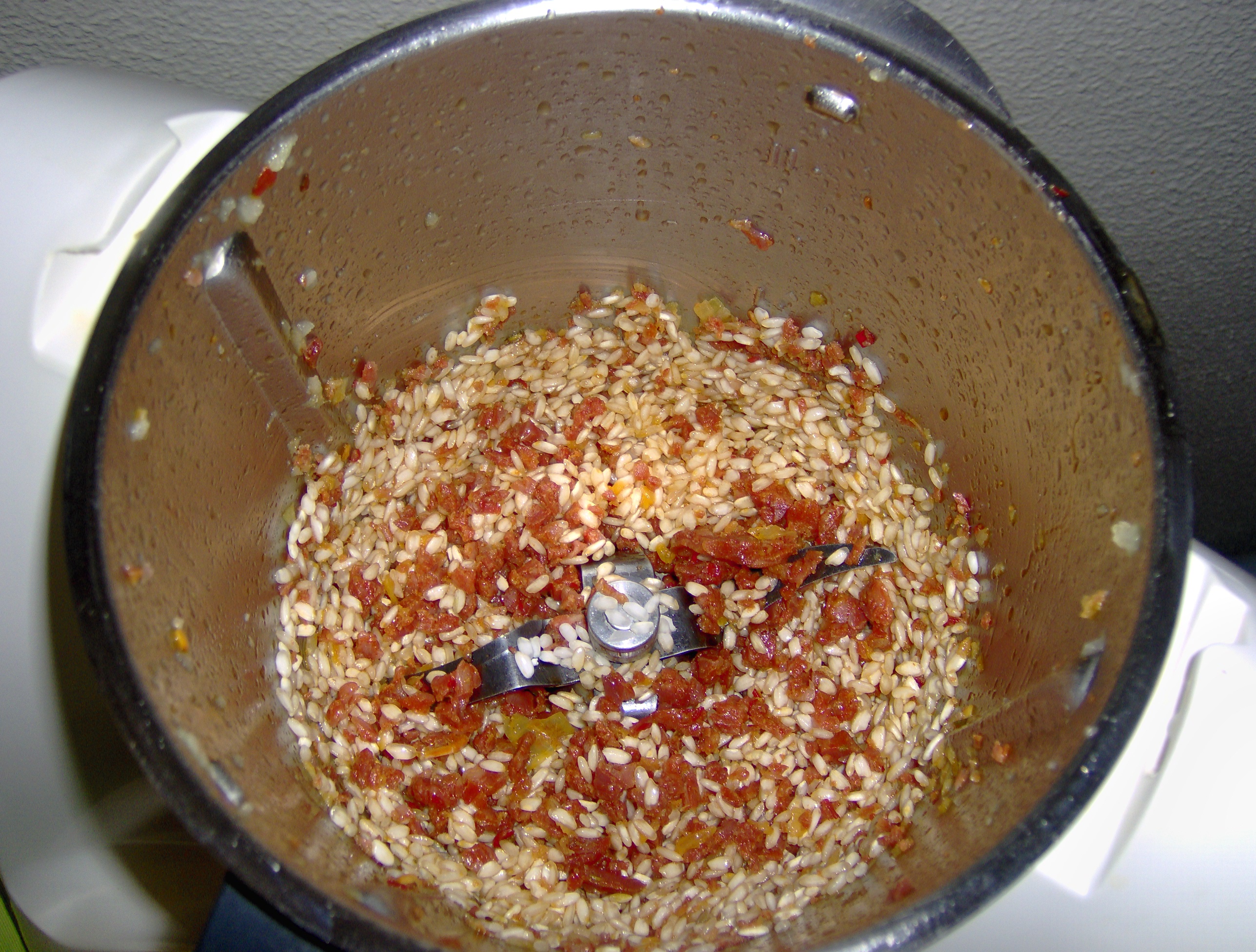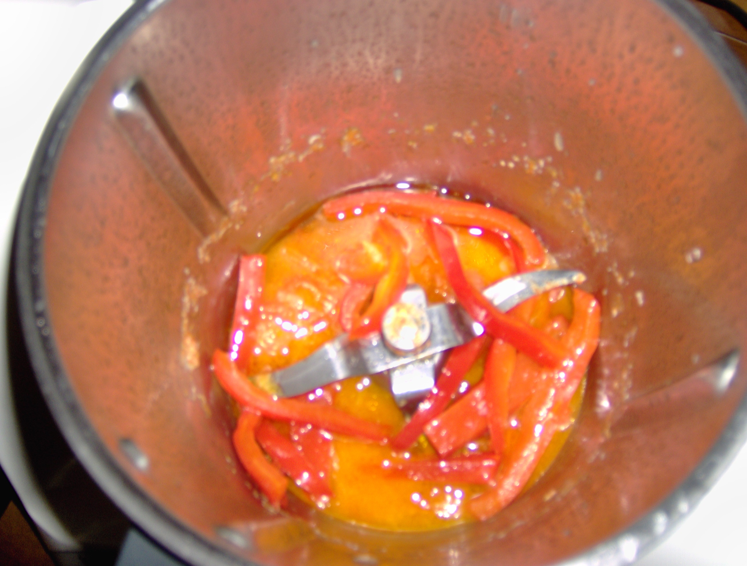 Aggiungere i 200 gr di peperoni rossi e cuocere 15' 100° vel 1.