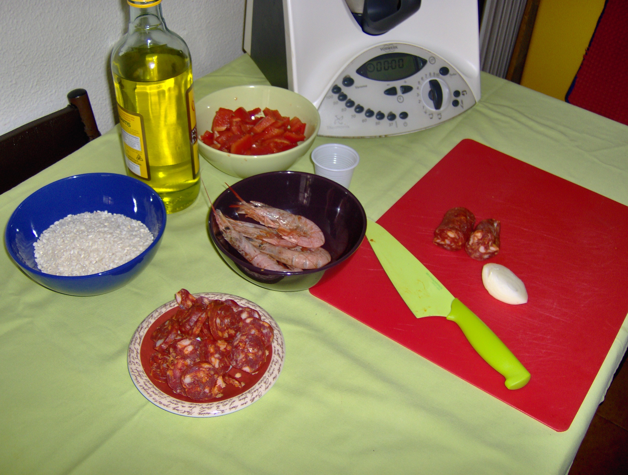 Tritare la cipolla e il chorizo 7 sec vel 7. Raccogliere sul fondo con la spatola.