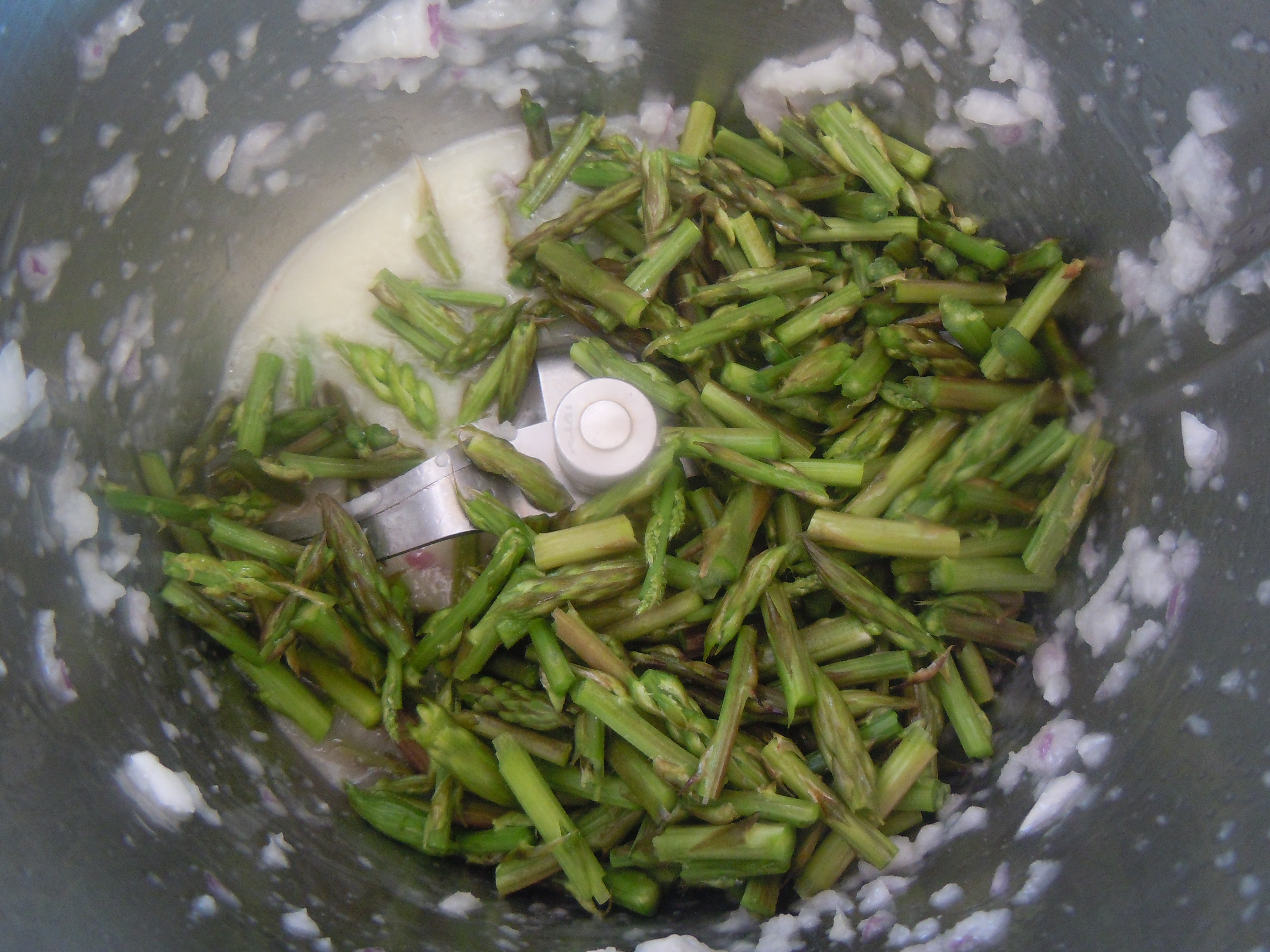 Aggiungere gli asparagi e soffriggere 2 min. 100^ Vel. 1